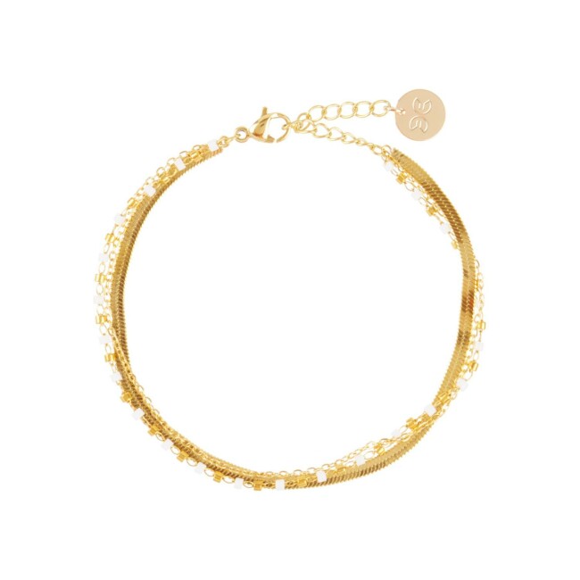 Les Essentielles Boucles d'oreilles Les Georgettes Bianca en laiton finition dorée, email nacré et perles