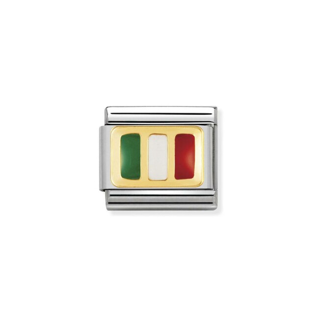 Composable Charms Nomination Italy Composable Drapeau en acier et or jaune, émail, Italie