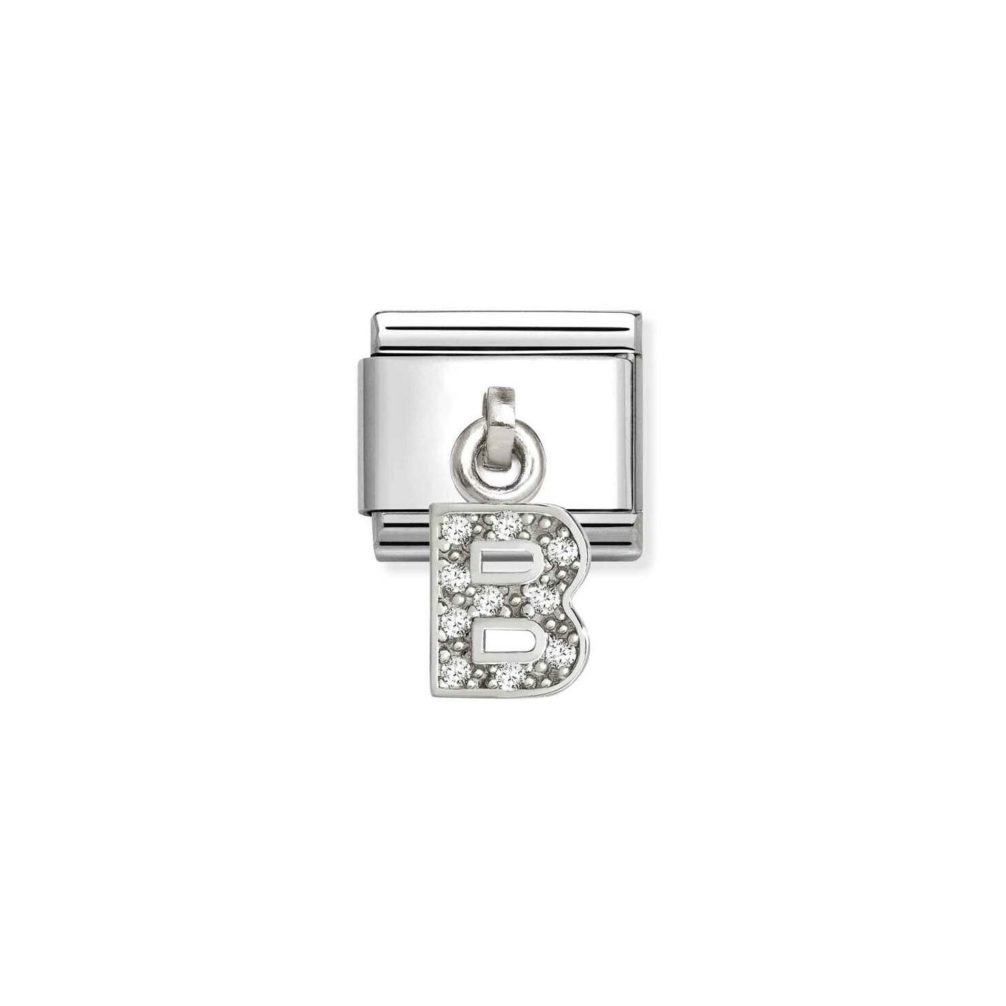 Charms Nomination Italy Composable Alphabet en acier, argent et oxydes de zirconium, B Description détaillée