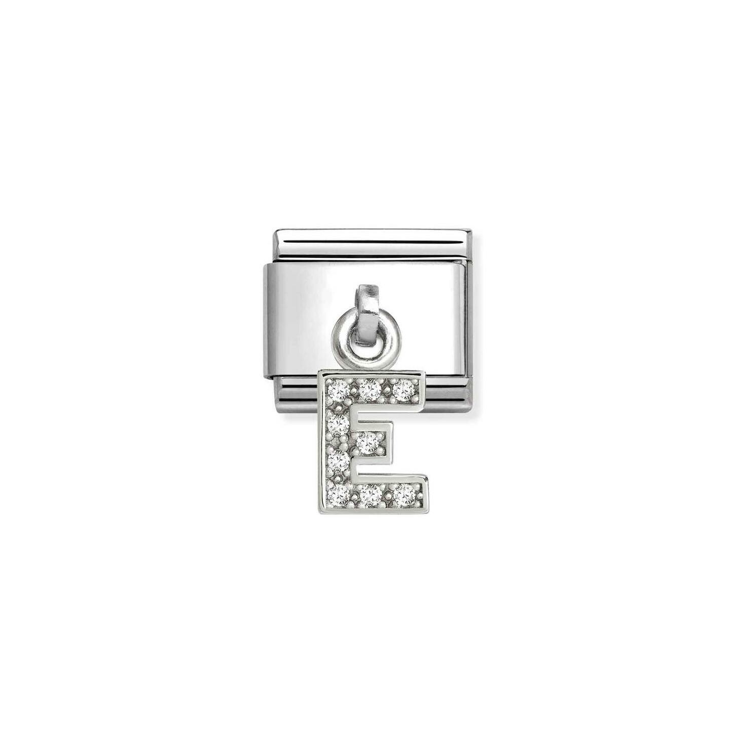 Charms Nomination Italy Composable Alphabet en acier, argent et oxydes de zirconium, E Description détaillée