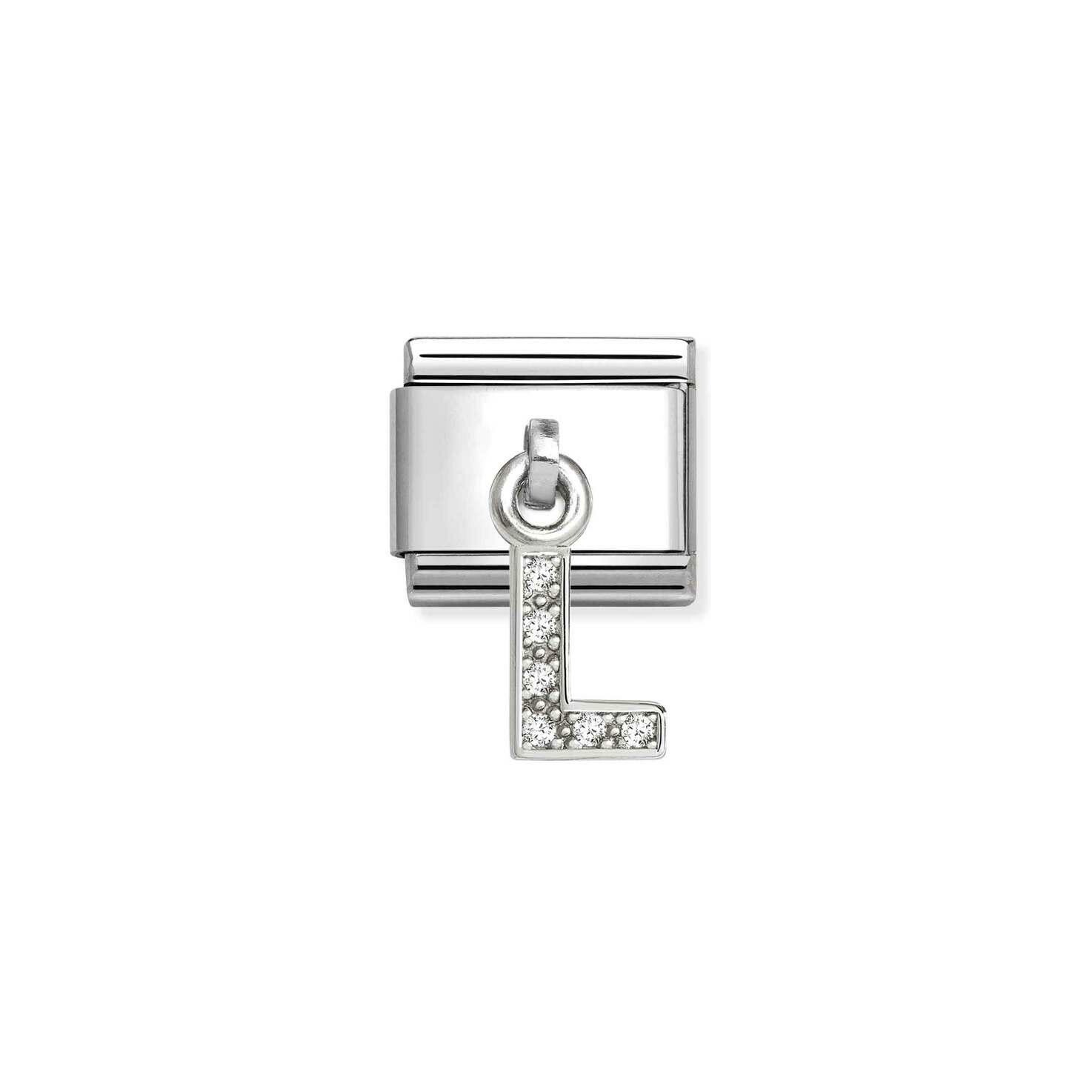 Charms Nomination Italy Composable Alphabet en acier, argent et oxydes de zirconium, L Description détaillée