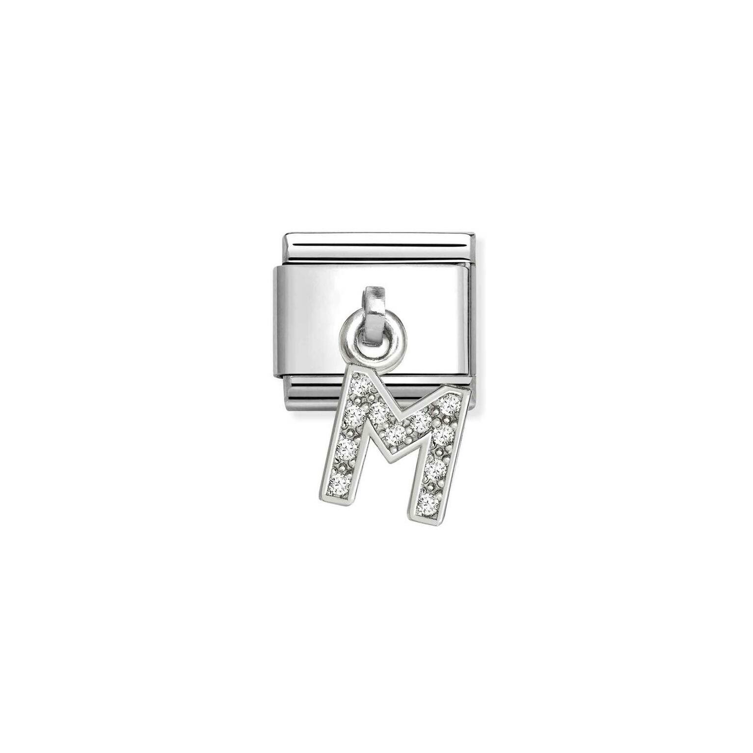 Charms Nomination Italy Composable Alphabet en acier, argent et oxydes de zirconium, M Description détaillée