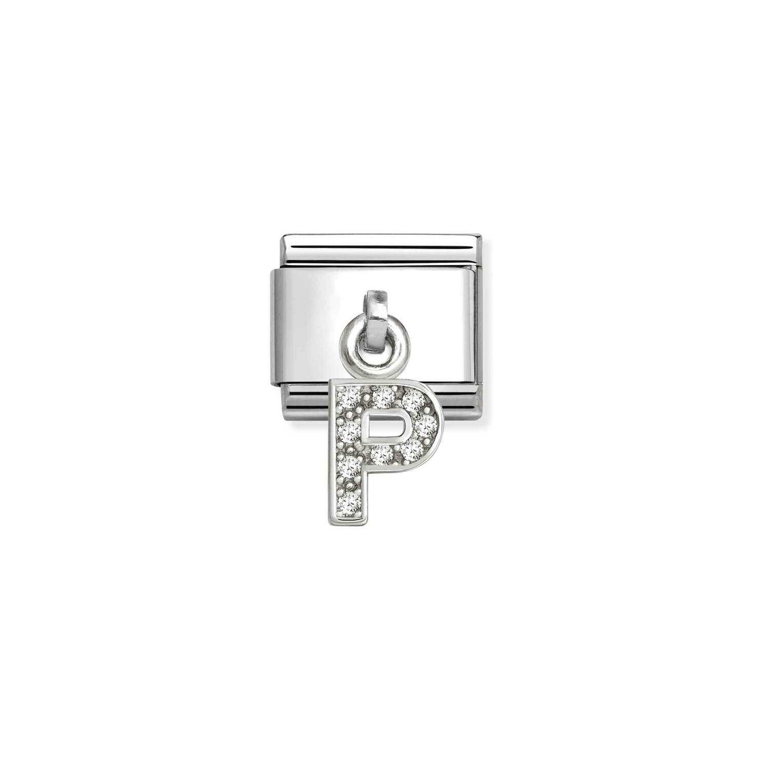 Charms Nomination Italy Composable Alphabet en acier, argent et oxydes de zirconium, P Description détaillée