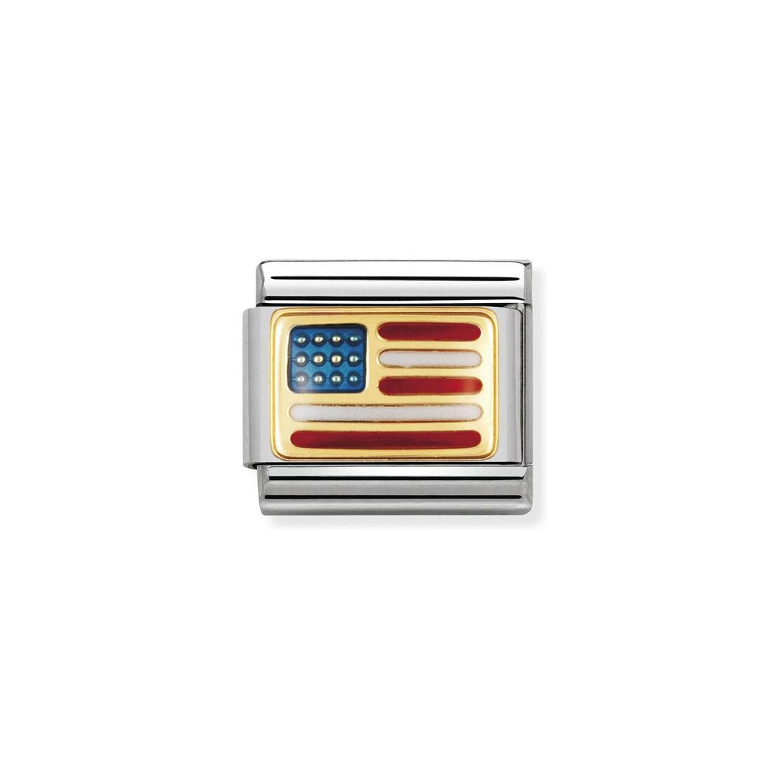 Charms Nomination Italy Composable Ameriques en acier et or jaune, émail, USA Description détaillée