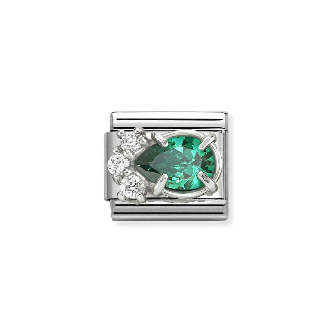 Charms Nomination Italy Composable Classic en acier, argent et oxydes de zirconium, Goutte Verte Description détaillée