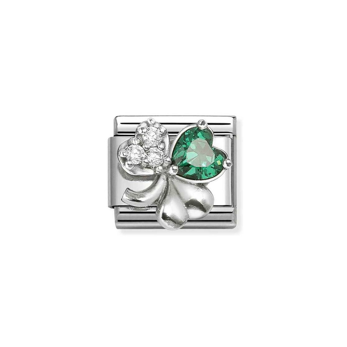 Charms Nomination Italy Composable Classic en acier, argent et oxydes de zirconium, Trèfle vert Description détaillée