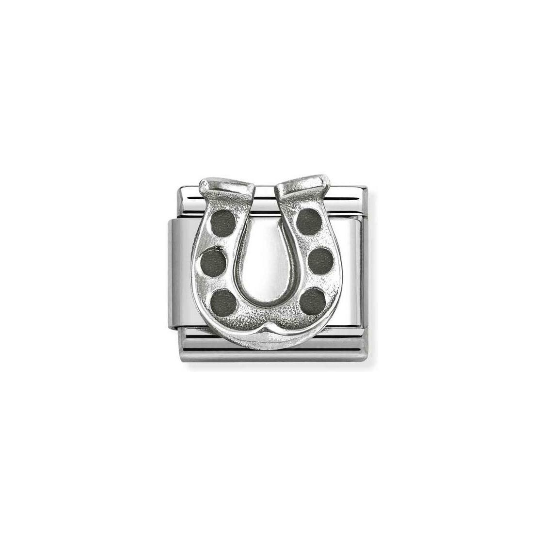 Charms Nomination Italy Composable Symboles en acier et argent, Fer à cheval Description détaillée